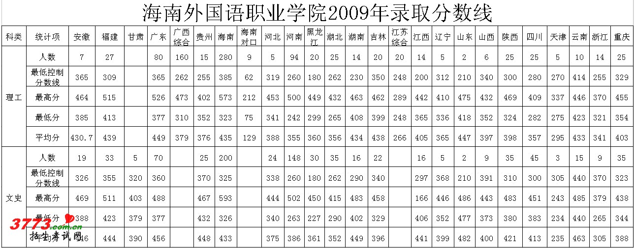2008年海南外国语职业学院招生来源计划表(计划总数)