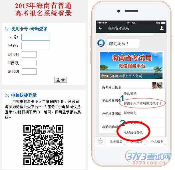 2、电脑快捷登录 用绑定报考卡个人二维码的手机,通过省考试局微信公众平台“个人服务”的“电脑端快捷登录”功能扫描下面的二维码,即可登录报名系统。