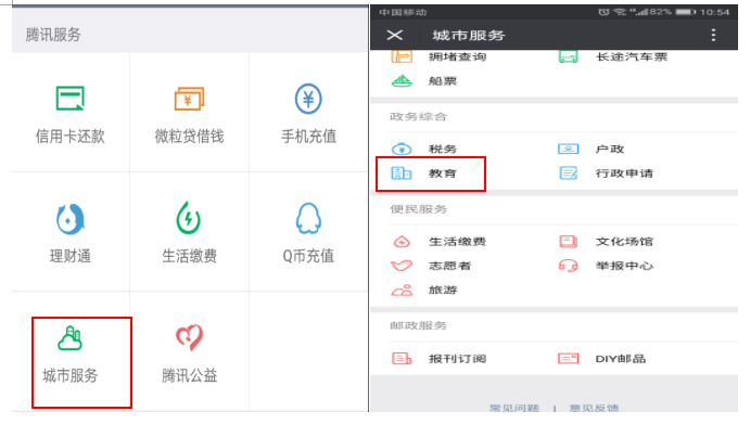 考生可用微信城市服务功能查询。打开微信,点“我”->“钱包”->“城市服务”->“教育”->“高考录取查询”。