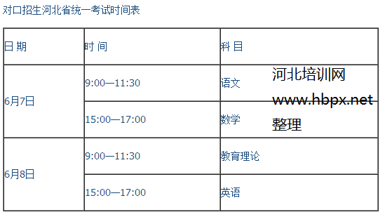 2015河北对口招生高考考试时间表