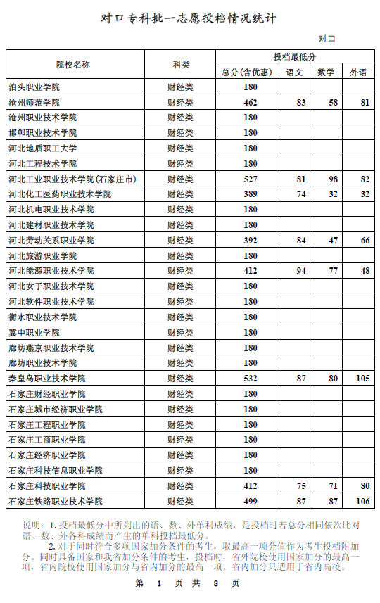 1.投档最低分中所列出的语、数、外单科成绩,是投档时若总分相同依次比对语、数、外各科成绩而产生的单科投档最低分。