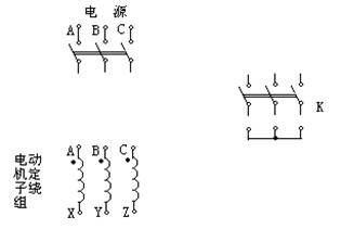 完成下面异步电动机星形—三角形换接起动的接线图;并说明起动时开关K应打在下面还是上面。