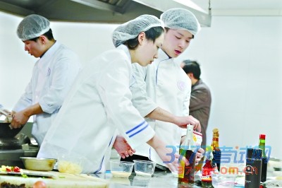 24名考生无一选择湖北名菜黄焖肉丸 “操作考试主要考查学生的基本功。”该校烹饪与食品工程学院副院长王辉亚介绍。“这些传统菜看似简单,做出特色却不容易。” 四道自选菜中,超过半数考生选了鱼香肉丝,其次是红烧鱼块,做拔丝苹果的有3人,而最有湖北地方风味的黄焖肉丸无人问津。 王辉亚分析,这可能是因为与其他三道菜相比,黄焖肉丸的制作难度相对大一点。然而,这是湖北的年节菜,家家户户过年过节少不了。作为已有两年专业学习的中职生,做这道菜应该不在话下。难一点,反而更能得高分。 许多传统名菜正从酒店菜谱消失 “餐饮业目前存在重时尚、轻传统的现象,多少对烹饪专业学生有点影响。”王辉亚认为,像拔丝苹果、拔丝马蹄,很多家庭的大妈大嫂都做得好,而现在,不少年轻厨师烧得了生猛海鲜,却不会“拔丝”,以致拔丝菜从众多酒店的菜谱上消失。 “拔丝菜很能考验炉台综合运用能力,挂醐、熬浆,对油温的控制等,哪个环节不到位,都会影响菜的成品质量。”王辉亚说。 这次操作考试中,老师们也发现了一些好苗子。一名女生做的拔丝苹果金灿灿,明亮剔透,饱满坚挺,赢得评委老师的一致称赞。18岁双胞胎兄弟蔡喆森和蔡喆林相伴来参考,两人都信心满满。 据悉,此次考试结果将于四月上旬公示