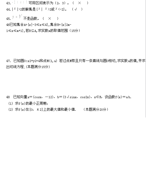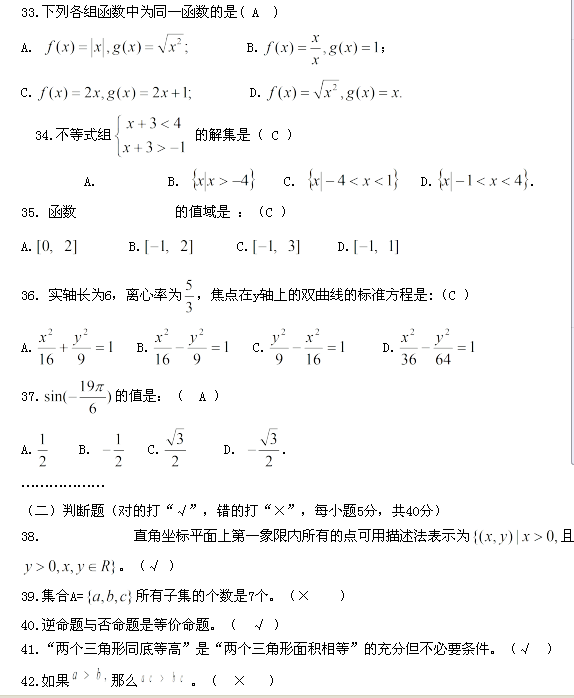 题型:选择题、判断题、解答题