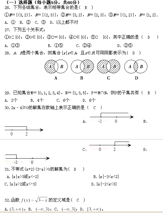 参考教材:《高中数学必修1》人民教育出版社