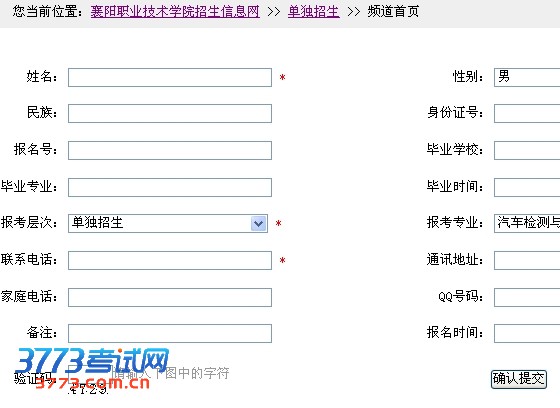 襄阳职业技术学院2012单独招生考试计划招收250名