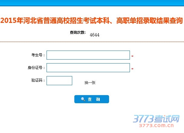 河北省教育考试院招考数据查询服务 2015年河北省普通高校招生考试本科、高职单招录取结果查询 查询次数: