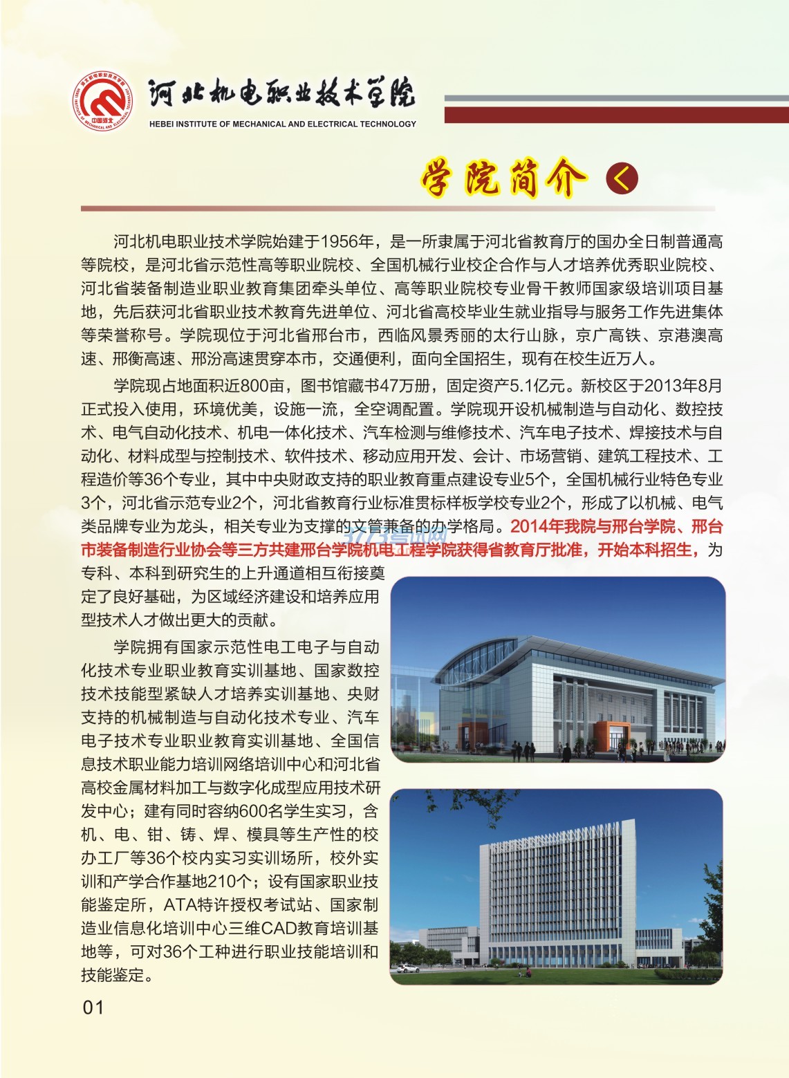 2017河北机电职业技术学院单招简章学院简介及封面、封底