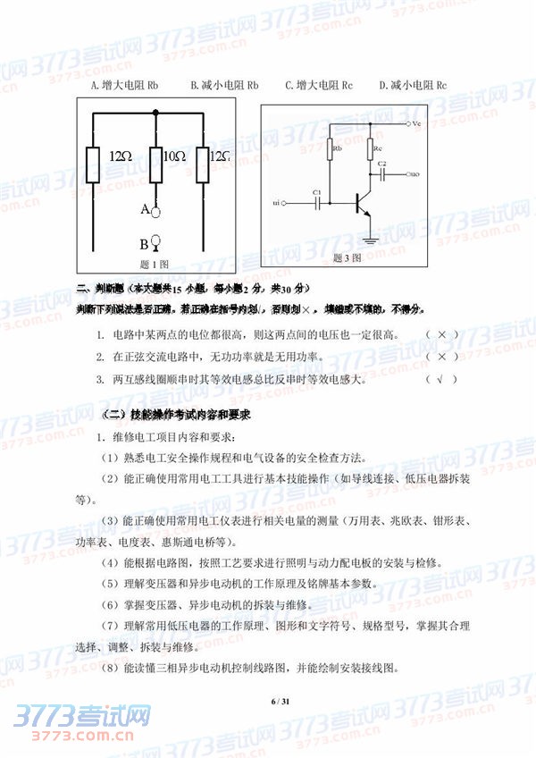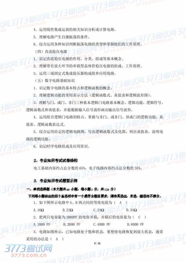 2015湖北技能高考电子类技能考试大纲