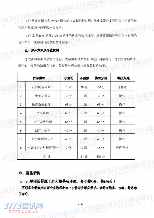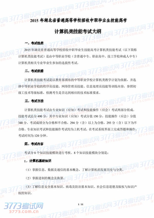 2015湖北技能高考计算机类技能考试大纲