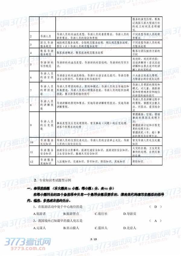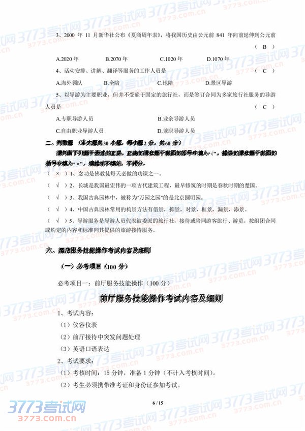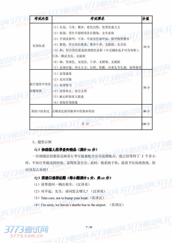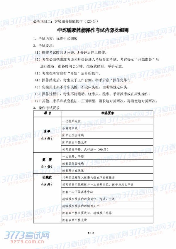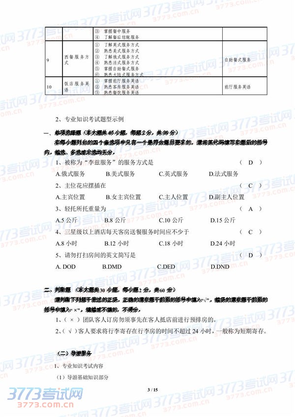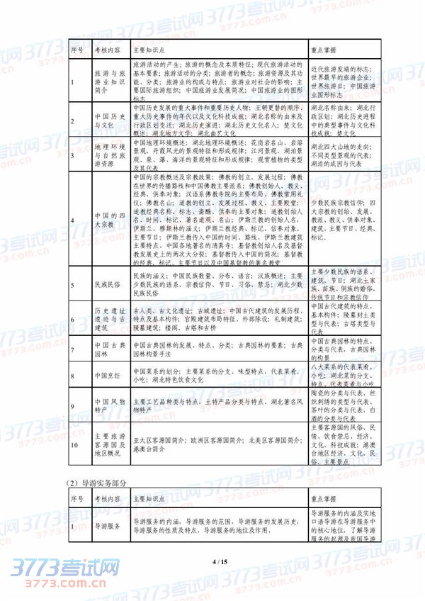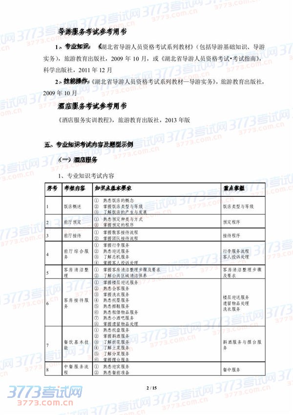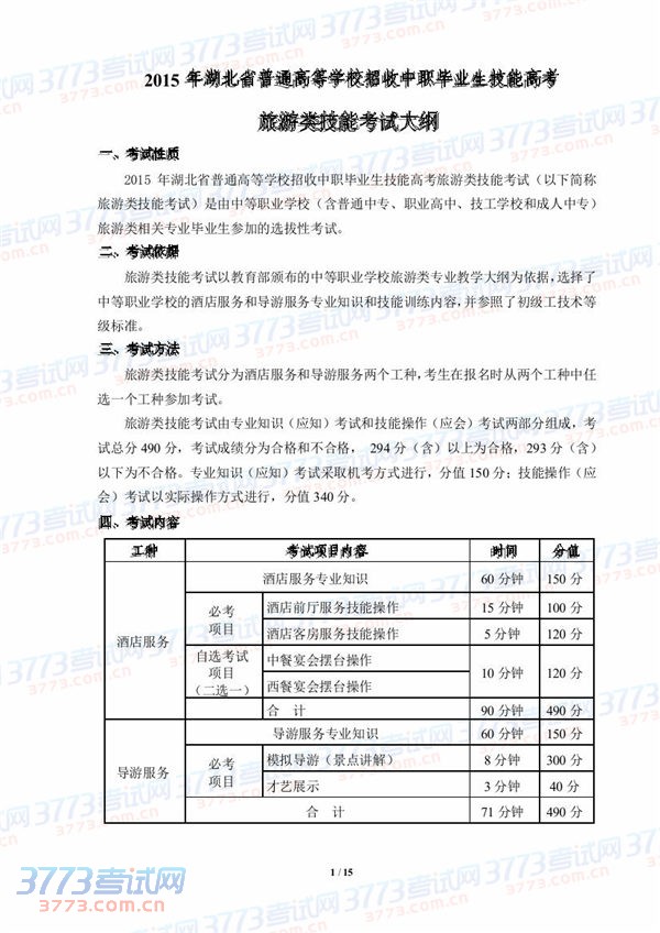 2015湖北技能高考旅游类技能考试大纲