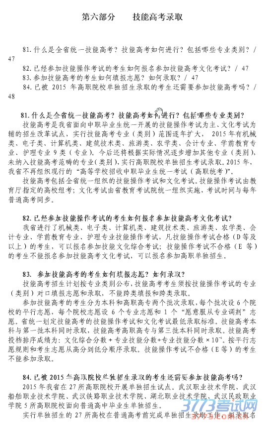2015湖北技能高考录取政策