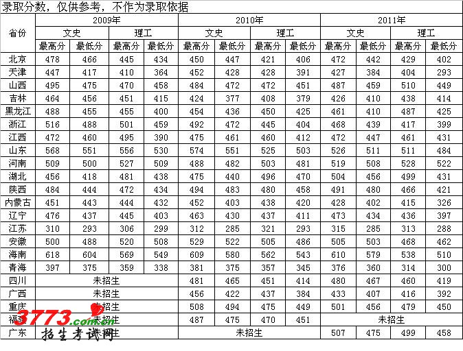 2009年-2011年省外录取分数线