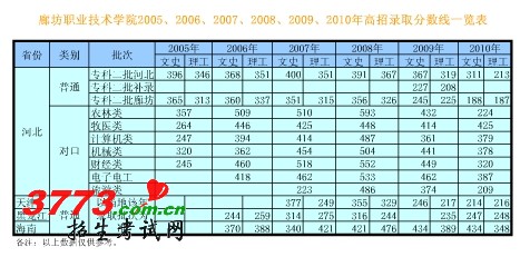 廊坊职业技术学院历年录取分数线一览表