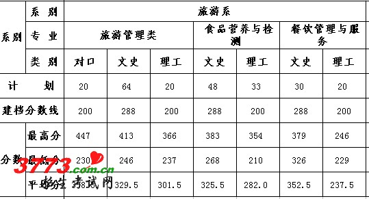 2010年旅游系专业录取分数线