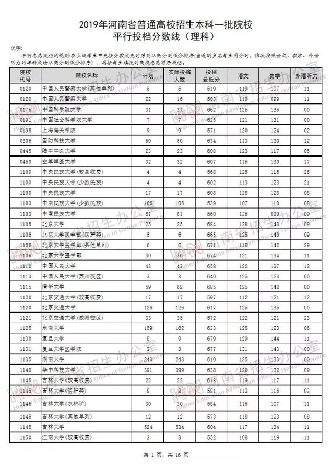 2019年河南省普通高招本科一批院校平行投档分数线出炉!