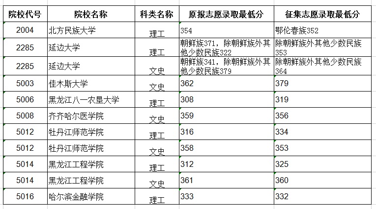 2020年黑龙江普通高校本科二批B段院校录取最低分数线(二)