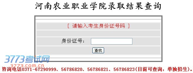 河南农业职业学院2014年单独招生录取查询(点击查询)