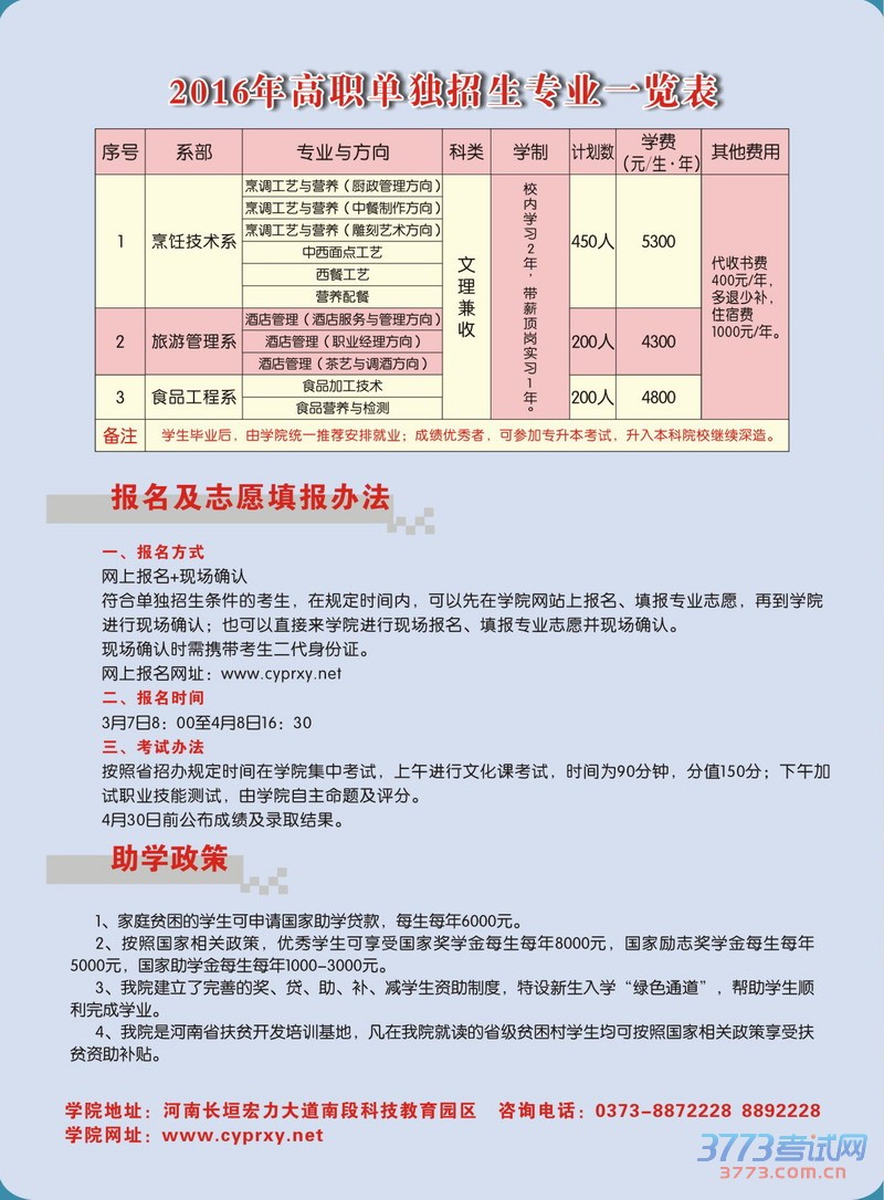 2016长垣烹饪职业技术学院高职单独招生简章暨专业介绍