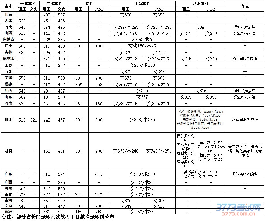 2014湖北工业大学工程技术学院在广西文理科录取分数线