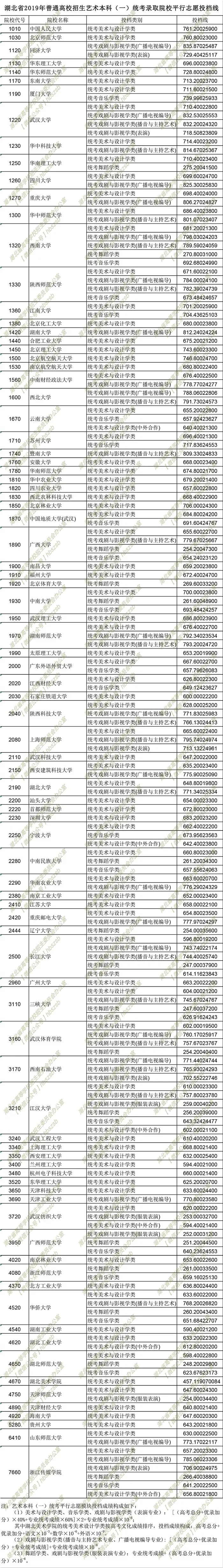 湖北省2019年普通高校招生艺术本科(一)统考录取院校平行志愿投档线
