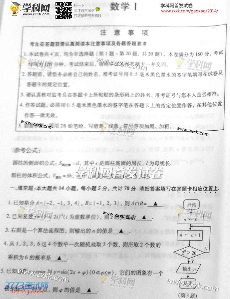 2014江苏高考数学试题试卷发布