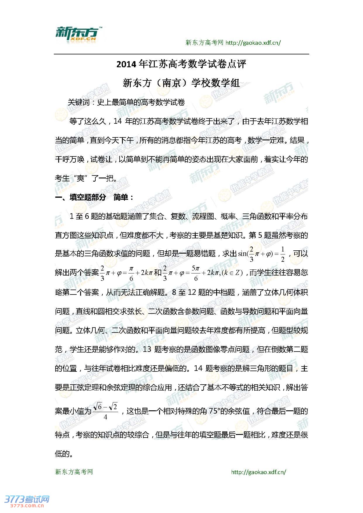 等了这么久,14年的江苏高考数学试卷终于出来了,由于去年江苏数学相当的简单,直到今天下午,所有的消息都指今年江苏的高考,数学一定难。结果,千呼万唤,试卷让,以简单到不能再简单的姿态出现在大家面前,着实让今年的考生"爽"了一把。