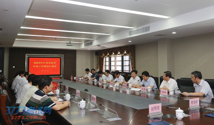 省教育厅厅长沈健主持阅卷工作汇报会。沈健强调,要认真贯彻落实曹卫星副省长对评卷工作的要求,全力以赴、紧密合作、扎实工作,共同完成好评卷工作,向全省考生交上一份满意的答卷。省教育考试院院长鞠勤汇报了我省普通高考阅卷工作。南京大学、南京师范大学阅卷点负责人分别汇报了阅卷点工作情况。