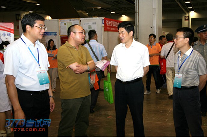 6月14日上午,江苏省2014年高等院校招生咨询会首场活动在南京国展中心举行,省教育厅副厅长朱卫国到现场视察指导。来自省内外的113所高校的代表与近万名考生及家长面对面进行了交流咨询。