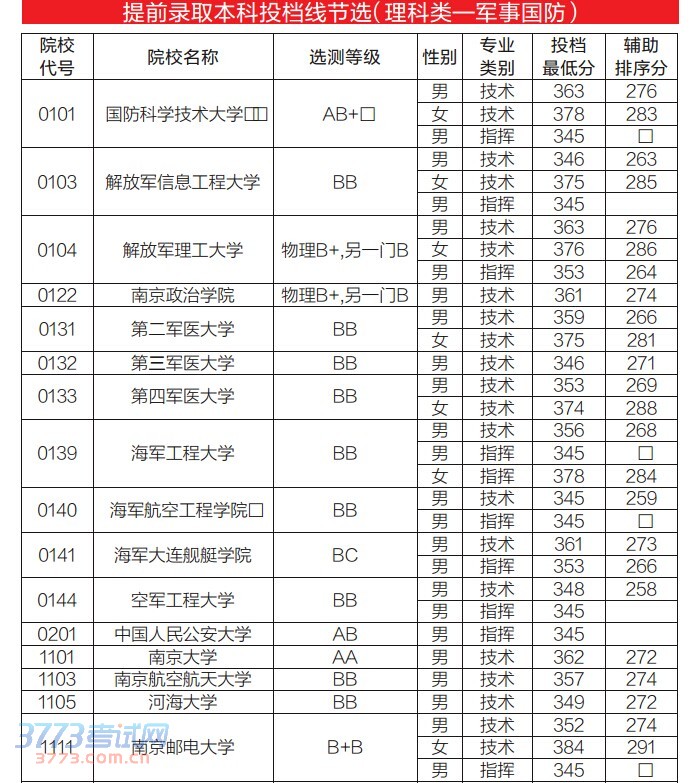 例如理科计划中,国防科学技术大学女生378分,比去年高出18分,而男生指挥类跌到本一线为345分,而且没招满,比去年低8分。