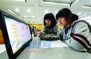 南京一中的学生在学校机房进行高考报名 现代快报记者 赵杰 摄