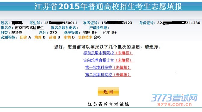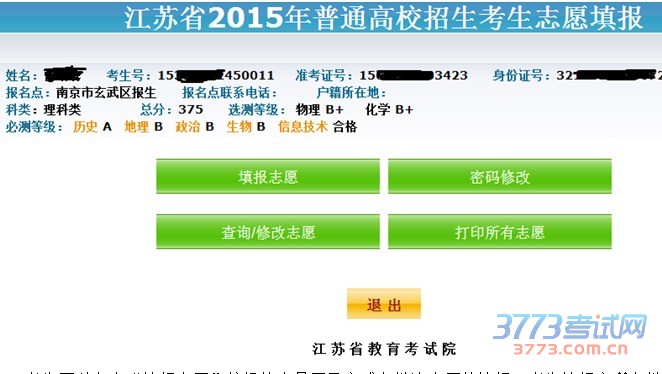 江苏省2015年普通高校招生考生网上志愿填报操作说明