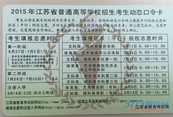 10、考生填报志愿时,需使用如下的动态口令卡,方能提交志愿。