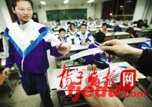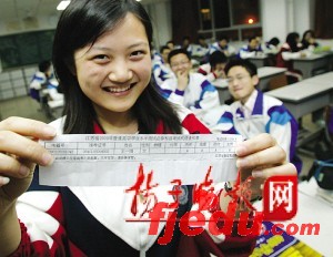 在经过近20天的热切等待后,昨天晚上7点左右,金陵中学河西分校高二的学生第一时间从班主任手中领到了用A、B、C、D不同等级记分的成绩通知单。记者在现场发现,面对不同的成绩,有人喜笑颜开,有人则难过地把头埋在了书堆里。“4个A!”心情很好的程同学得意地展示自己的成绩单。他把自己成功的原因归结为两点:一是去年小高考很多人都栽在了政治上,自己的政治也一向不好,因此就在政治上狠下了工夫,该背的该理解的都没有落下;二是他觉得今年文科考题确实偏简单。不过考了3A1B的小康拿到成绩单后却很失落。“今年考试一没想到物理化学这么难,二没想到自己的强项化学居然只拿了B。”不过难过归难过,康同学说没有4A已经是既定事实了,下面要把重点放在另外五门上。不过记者发现,对于定位于过关性考试的小高考,这次有学科没过关的学生压力是非常大的。一位姓吴的同学就栽在了生物上。“我心里很不好受,别的同学现在开始就可以全心备战高考了,而自己还要参加明年的生物补考。”