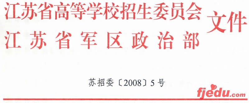 省高等学校招生委员会和省军区政治部制订《江苏省军队院校招收普通中学高中毕业生和普通高等学校招收国防生工作的实施办法》(见附件1),我省军队院校招生和普通高等学校招收国防生工作应按此实施办法执行。
