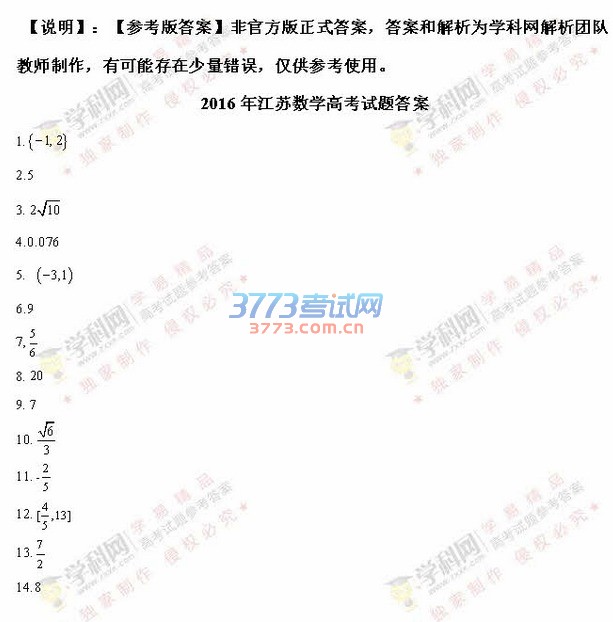 2016江苏高考数学答案发布(部分答案)