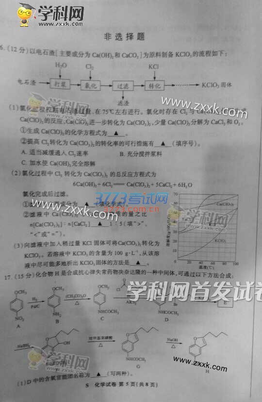 2016江苏高考化学试题及答案(试题发布)