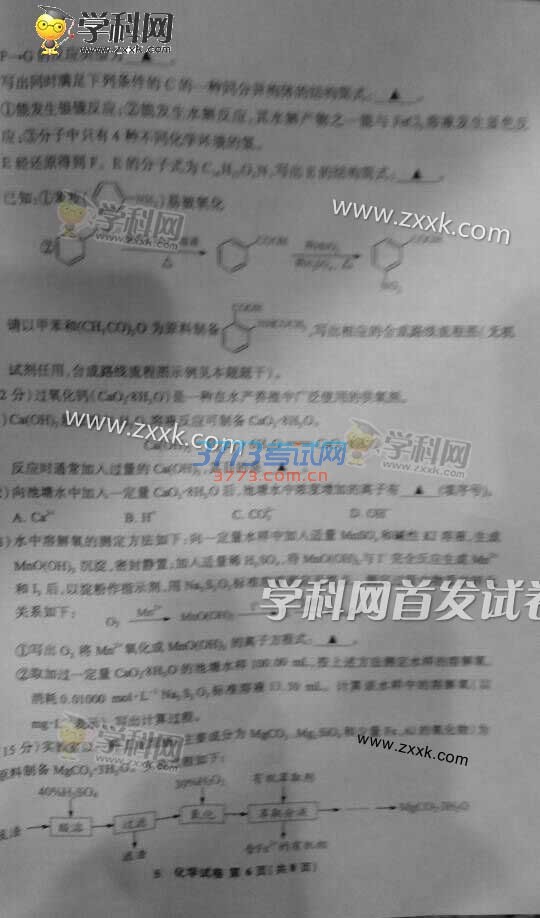 2016江苏高考化学试题及答案(试题发布