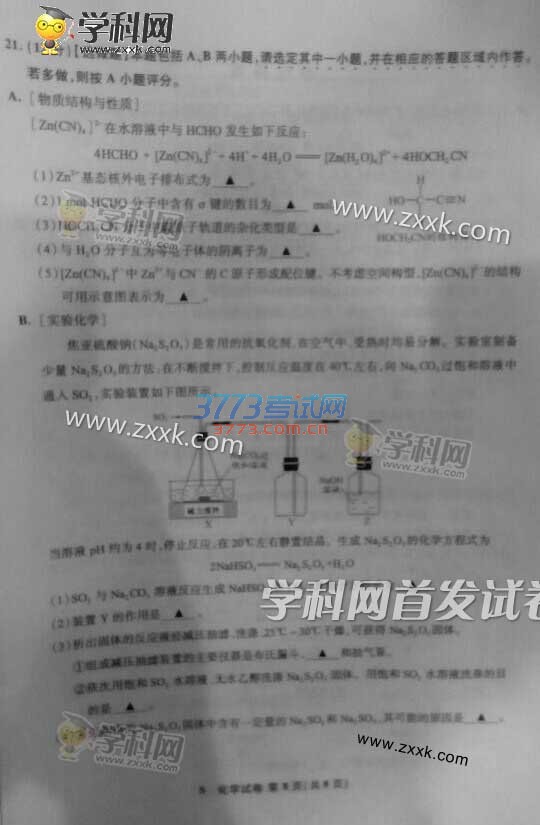 2016江苏高考化学试题及答案(试题发布)
