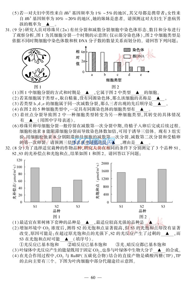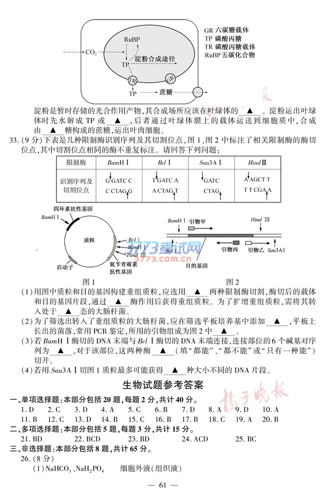 2016江苏高考生物试题及答案发布