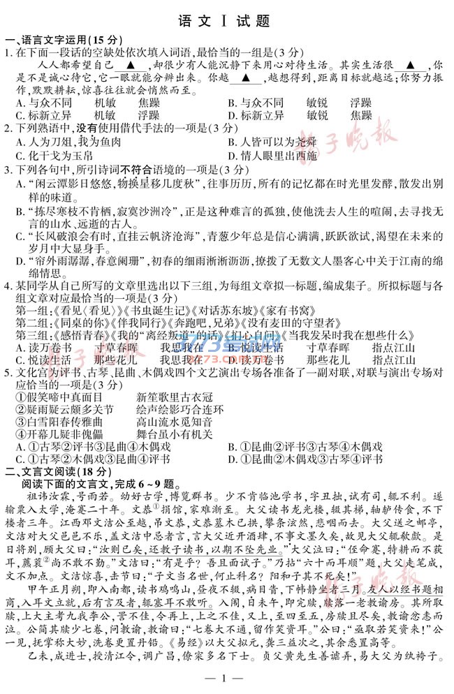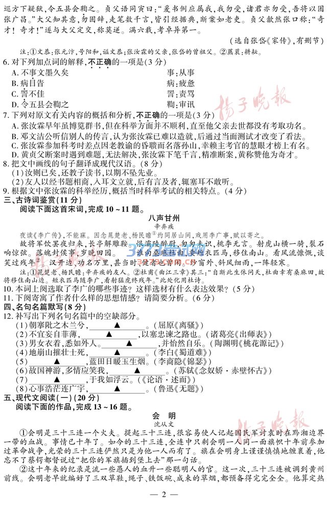 2016江苏高考语文试题及答案发布