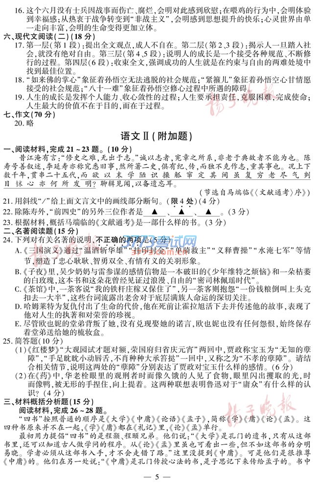 2016江苏高考语文试题及答案发布