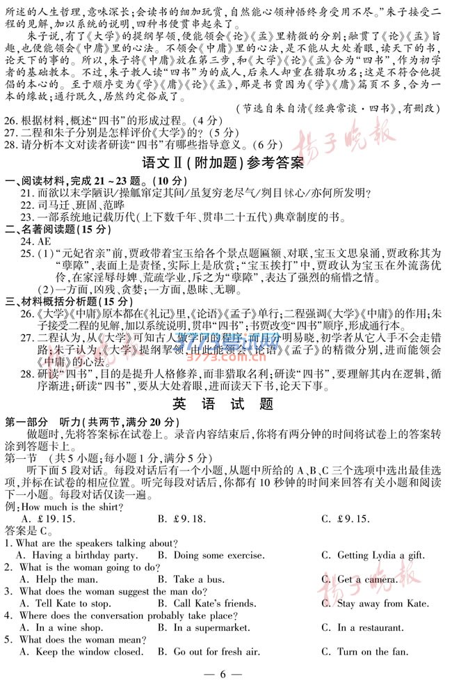 2016江苏高考英语试题及答案发布
