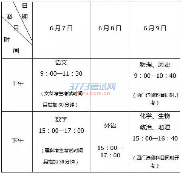 2017年普通高校招生全国文化统一考试江苏省考试时间安排表