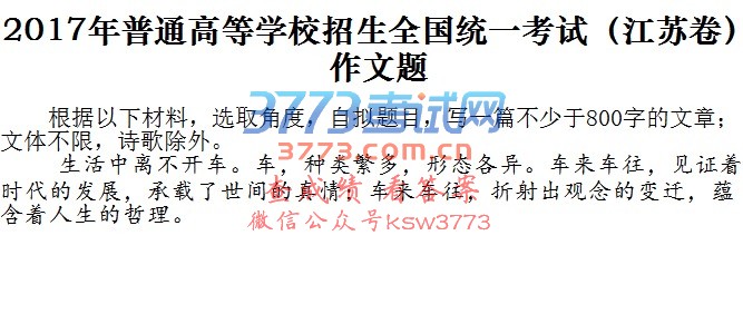 2017年普通高等学校招生全国统一考试(江苏卷)作文题