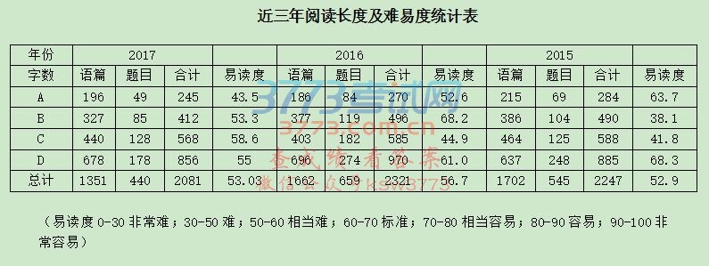 总之,今年阅读理解的4篇文章虽然字数比起2016年有所下降,文本生词量合理地控制在3%以内,符合考试大纲要求。但是总体来说,语篇的难易度呈现层次性,区分度较高,高分难得,有利于高考选拔。