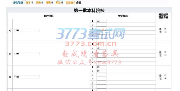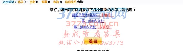 7、系统根据考生的报考信息,必测等级,选测等级和特征分进行判断,显示该考生可以填报的批次。