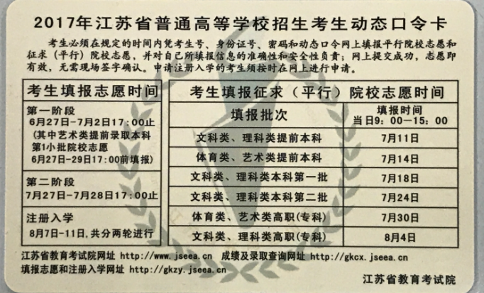 10、考生填报志愿时,需使用如下的动态口令卡,方能提交志愿。