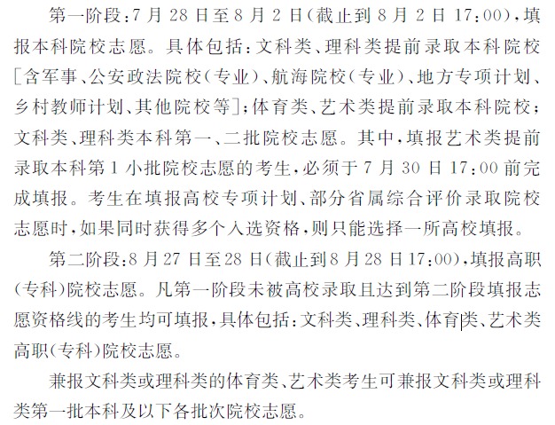 志愿资格线后!在省教育考试院专设的志愿填报网站!分两个阶段填
