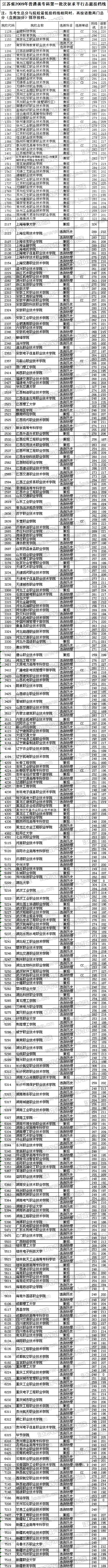 2009年江苏高考专科第一批次征求平行志愿投档线